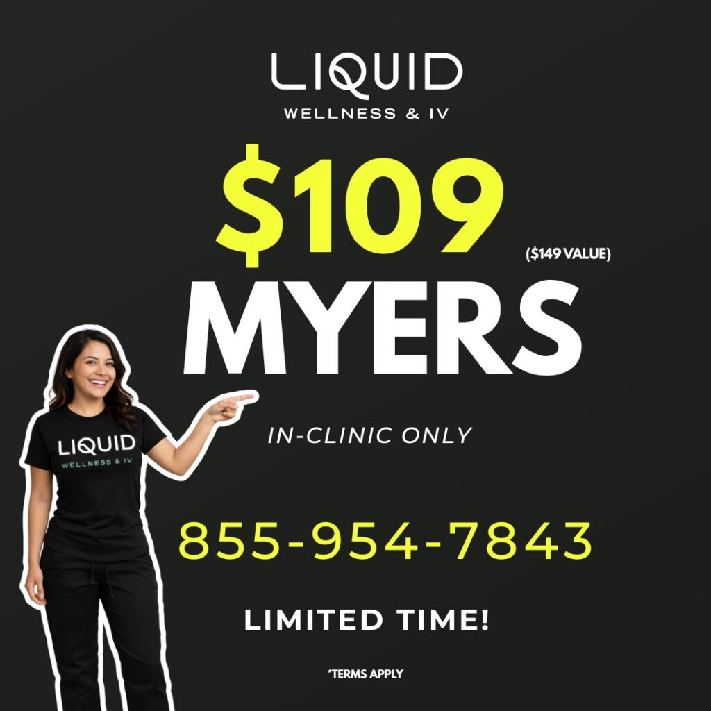 FOR A LIMITED TIME, MYERS COCKTAIL IS NOW JUST $109 IN-CLINIC, A $40 SAVINGS. VALID THROUGH FEBRUARY 28, 2026.